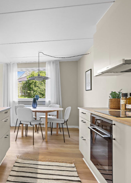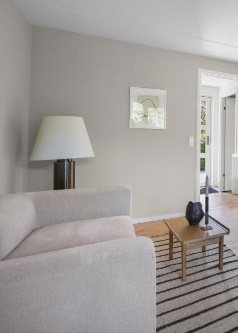 Indretning i forbindelse med boligsalg. Vi har tilføjet udvalgte møbler og detaljer, der spiller op mod kundens eksisterende inventar og skaber et mere alsidigt, indbydende og salgbart udtryk.